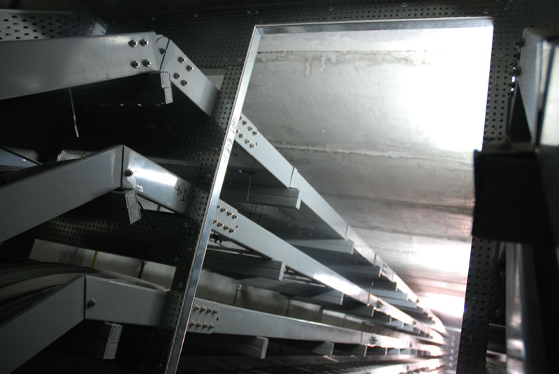 It was identified that fire barriers were required at 79 separate tunnel locations across the site in order to effectively isolate a fire occurring within the tunnels, and that each barrier must provide 2 hour fire protection and withstand high numbers of door openings and closures every day, in addition to being fully demountable and relocatable. The size of the fire barrier at each location was designed to be 2.80m wide x 2.20m high, with each fire barrier containing one 2 hour fire rated access door and cut-out provisions for 6 cable trays on each side of the door to pass through the fire barrier, with the penetrations being filled with firebat.