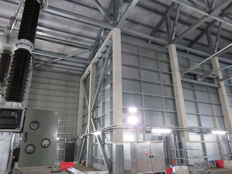 In conjunction with independent structural engineers, we created a bespoke 1800m² Durasteel system design with their technical approval, and in-depth consideration of deflection head detail to cater for wind and snow loads. The Durasteel system consisted of a single skin, integrity-only wall and ceiling design. This was designed specifically to stop the spread of fire from one transformer bay to another, and not allowing it to spread to the adjacent areas of the building.