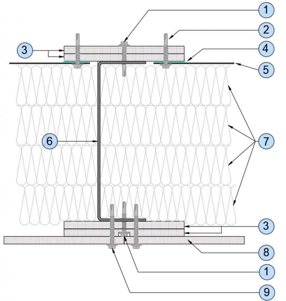- 4 layers x 50mm x 140kg/m³ stone wool